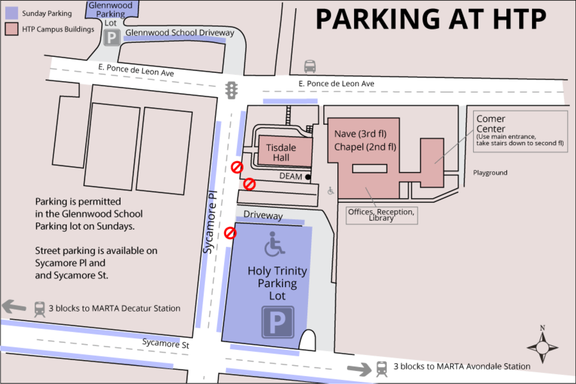 Holy Trinity Parish Episcopal Church, located in the City of Decatur, Georgia, is just a few blocks from Decatur square. The church is accessible via MARTA buses and trains, via either the Avondale or Decatur stops.