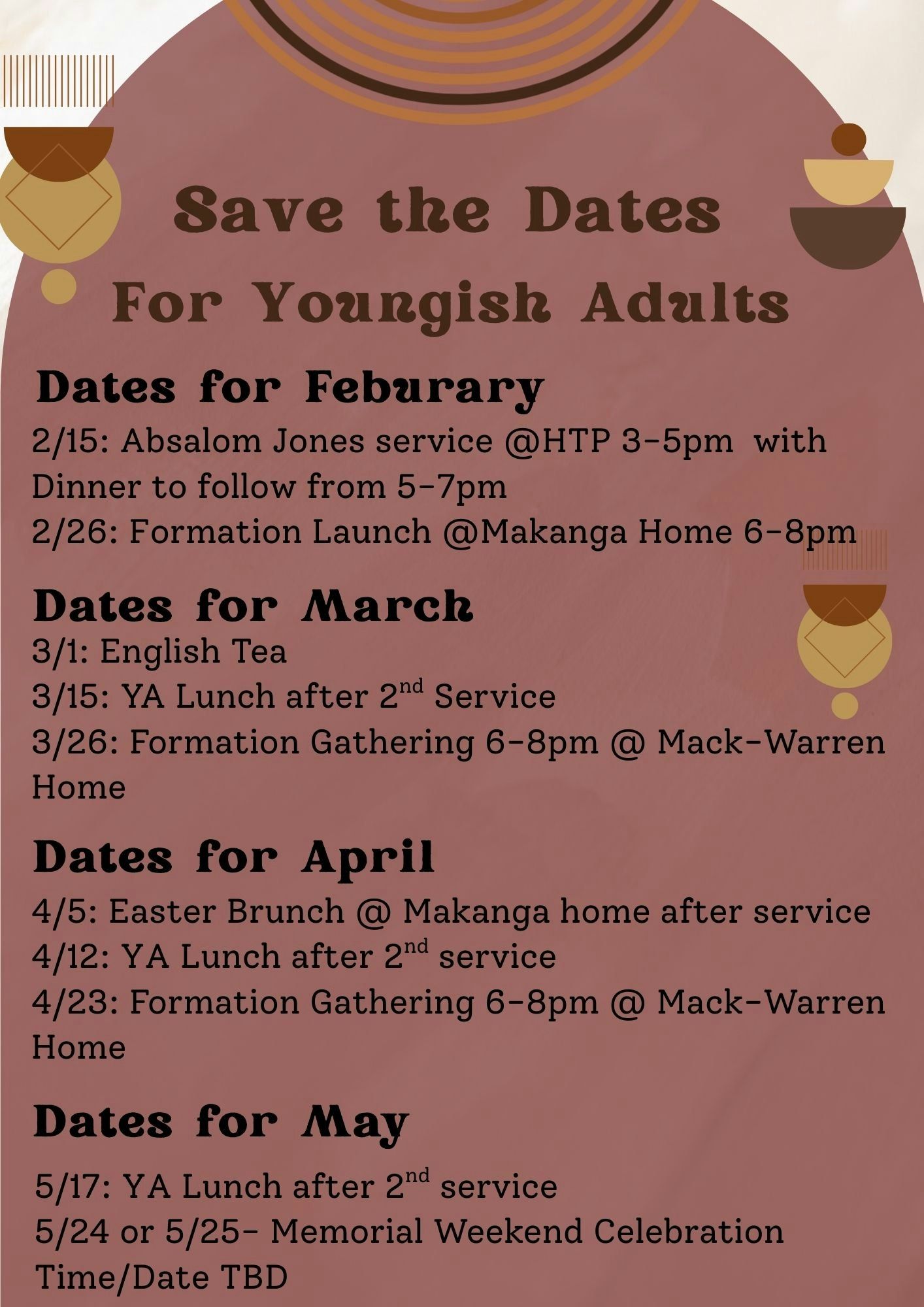 HTP's Young(ish) Adults are a vibrant group of parishioners between 18-40ish who gather regularly for study, fellowship, and prayer. We come from all walks of life and find our common ground through our faith and love for one another and the broader Holy Trinity community. Our formation program offers regular opportunities for prayer, fun, and service.